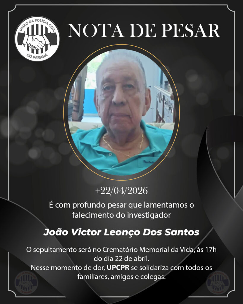 É com profundo pesar que lamentamos o falecimento do investigador João Victor Leonço Dos Santos.