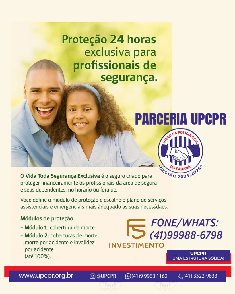 O Vida Toda Segurança Exclusiva é o seguro criado para proteger financeiramente os profissionais da área de segura e seus dependentes, no horàrio ou fora do Paraná.